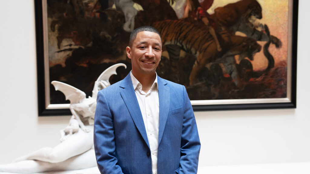 Propriétaire de la galerie Place de l’Art, rue de Metz à Toulouse, Karim Azmani participe aussi à l’émission « Affaire conclue », sur France 2 et anime une chronique pour la radio Ici Occitanie. « En tant qu’Ambassadeur de Toulouse, antiquaire et galeriste, j’ai choisi d’accueillir le Fauteuil Rose devant ce tableau d’Henri Martin, La Course vers l’abîme, une récente acquisition du Musée des Augustins qui vient de rouvrir ses portes après 6 ans de travaux. Henri Martin est en effet l’un des représentants les plus illustres de notre belle Ville rose, et à ce titre c’est un véritable modèle pour moi. »