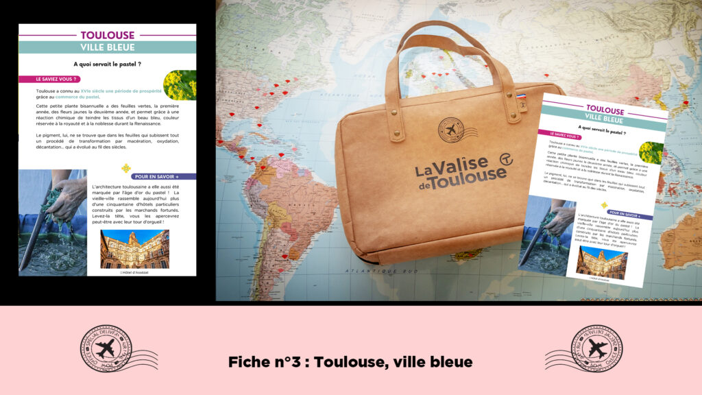 À chaque nouveau numéro de La Valise de Toulouse, nous vous proposons de découvrir un des nombreux objets qu’elle contient. Ce mois-ci, nous mettons en lumière la fiche « Toulouse, ville bleue ».