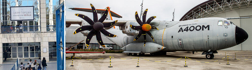 Il se trouve que le Lycée Français International de Séville a été créé en 2008 sous l’impulsion d’Airbus qui implantait alors dans la capitale andalouse la ligne d’assemblage de l’avion de transport militaire A400M.
