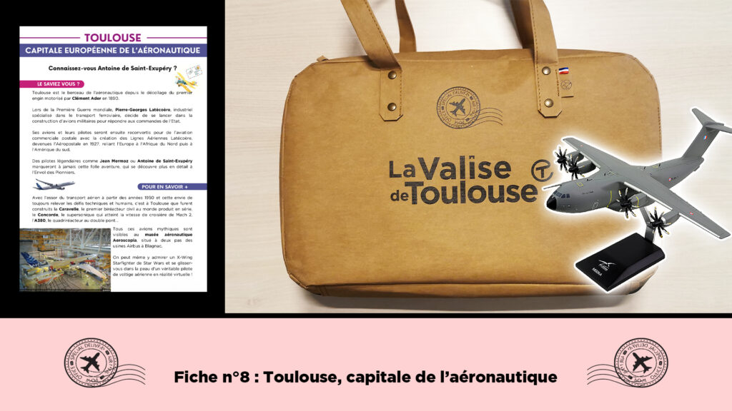 À chaque nouveau numéro de La Valise de Toulouse, nous vous proposons de découvrir un des nombreux objets qu’elle contient. Séville étant le lieu de production de l’avion militaire A400M d’Airbus, nous mettons cette fois-ci en lumière « Toulouse, capitale de l’aéronautique ».