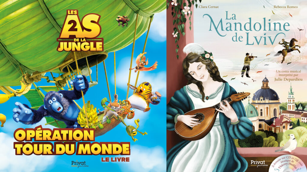 Nous avons aussi eu le plaisir d’éditer les albums des films TAT, le studio d’animation toulousain, auteur notamment de la série Les As de la Jungle, le livre-CD La Mandoline de Lviv, de Clara Cernat et Rebecca Romeoles, interprété par Julie Depardieu, ainsi que la série consacrée aux couleurs créée par Michel Pastoureau et illustrée par Laurence Le Chau.
