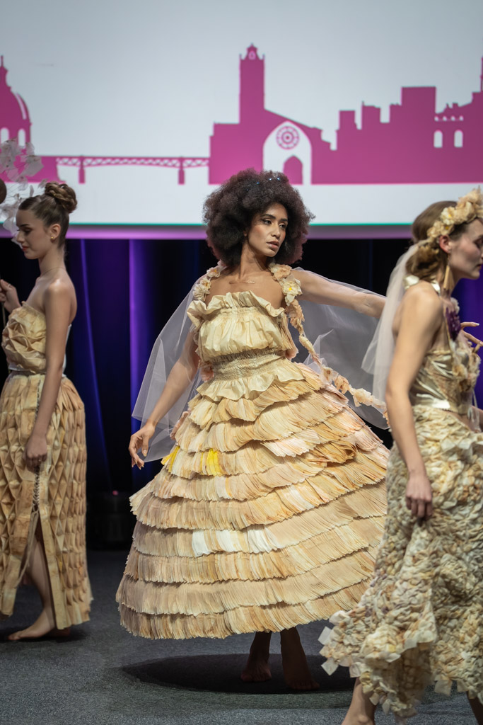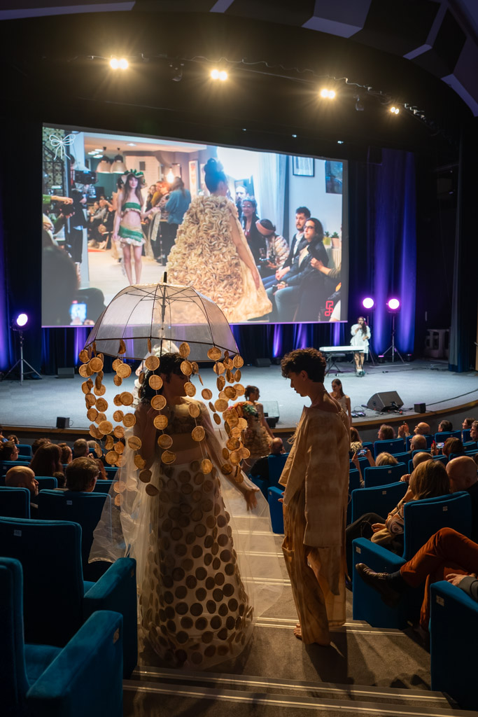 - 8 mannequins présentant les vêtements et accessoires en sachets de thé recyclés créés par Christelle Garrigue accompagnés par l’auteur-compositeur-interprète Meldy Mélody