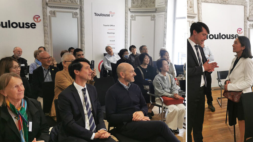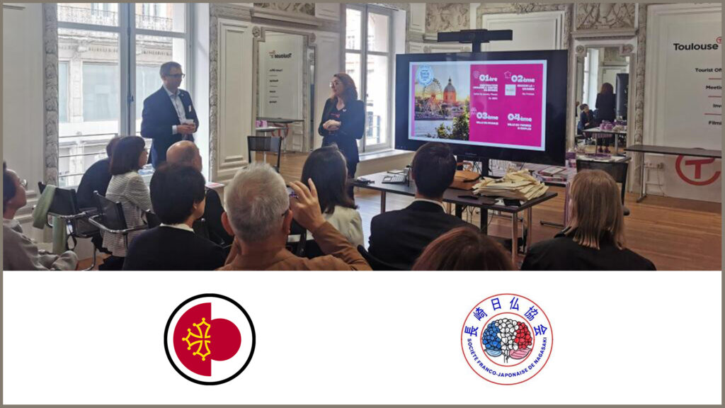 Au cours du séjour toulousain de ces japonais francophiles, une réception a été organisée au sein de l’Agence d’Attractivité afin de leur présenter les atouts économiques, touristiques et culturels de notre ville en présence du Consul Honoraire du Japon à Toulouse, Frédéric REYNES.